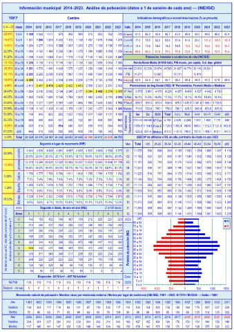 15017 Cambre Indicadores demográficos e económicos básicos (% se procede)
