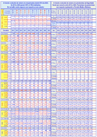 De 2014 a 2023 perde 8 851 (-0.78%) habitantes. Social por concello entre 2014 e 2023. Porcentaxe de pensionistas