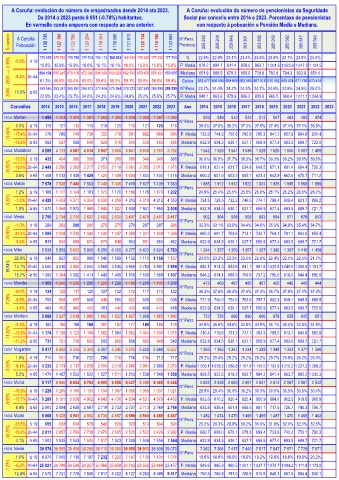 De 2014 a 2023 perde 8 851 (-0.78%) habitantes. Social por concello entre 2014 e 2023. Porcentaxe de pensionistas