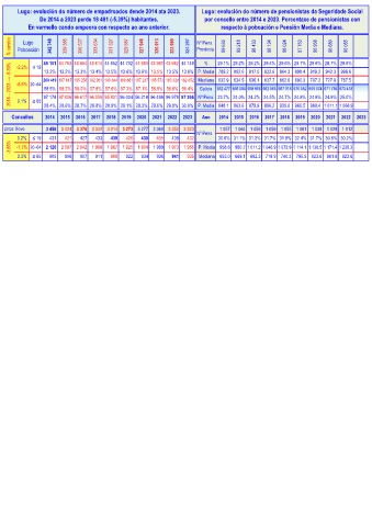 En vermello cando empeora con respecto ao ano anterior. respecto á poboación e Pensión Media e Mediana.