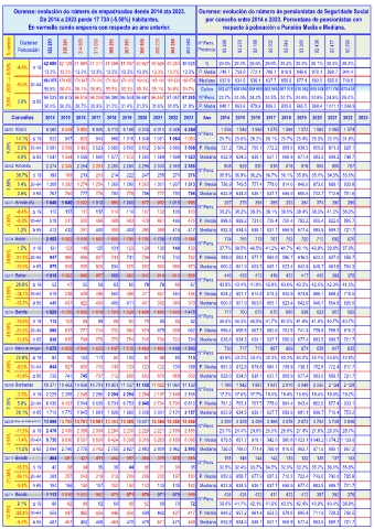 De 2014 a 2023 perde 17 730 (-5.50%) habitantes. por concello entre 2014 e 2023. Porcentaxe de pensionistas con