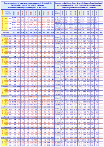 En vermello cando empeora con respecto ao ano anterior. respecto á poboación e Pensión Media e Mediana.