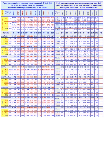 De 2014 a 2023 perde 4 209 (-0.44%) habitantes. Social por concello entre 2014 e 2023. Porcentaxe de pensionistas