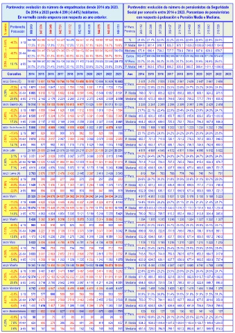 De 2014 a 2023 perde 4 209 (-0.44%) habitantes. Social por concello entre 2014 e 2023. Porcentaxe de pensionistas