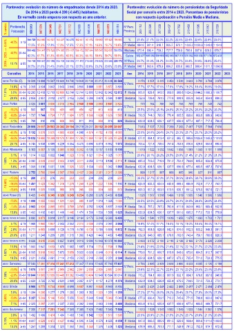 De 2014 a 2023 perde 4 209 (-0.44%) habitantes. Social por concello entre 2014 e 2023. Porcentaxe de pensionistas