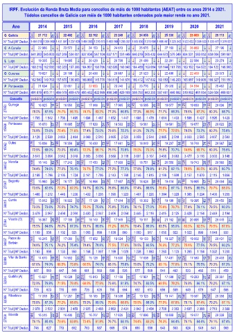 Tódolos concellos de Galicia con máis de 1000 habitantes ordenados pola maior renda no ano 2021.