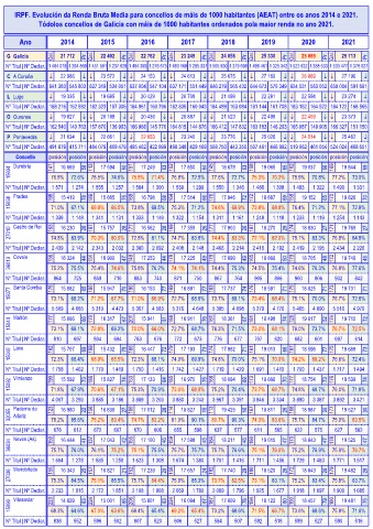Tódolos concellos de Galicia con máis de 1000 habitantes ordenados pola maior renda no ano 2021.
