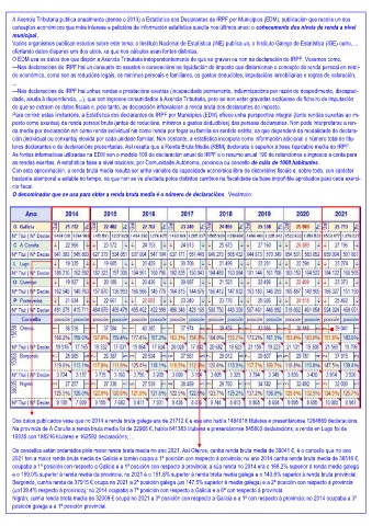 lares declarantes e de declaracións presentadas. Así resulta que a Renda Bruta Media (RBM) declarada é superior á base liquidable media do IRPF.