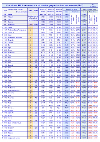 Estatística do IRPF dos residentes nos 288 concellos galegos de máis de 1000 habitantes (AEAT) (JRLS)
