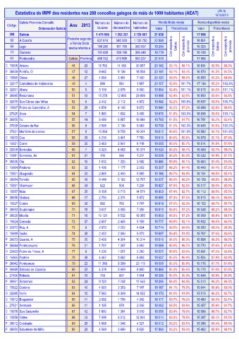 Estatística do IRPF dos residentes nos 288 concellos galegos de máis de 1000 habitantes (AEAT) (JRLS)