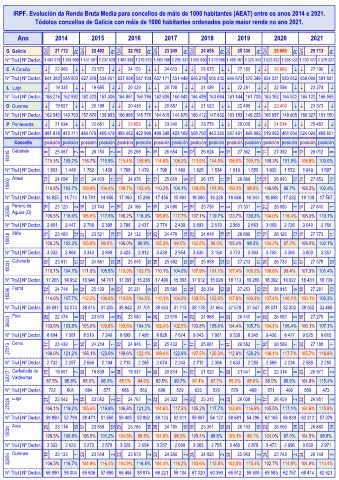 Tódolos concellos de Galicia con máis de 1000 habitantes ordenados pola maior renda no ano 2021.