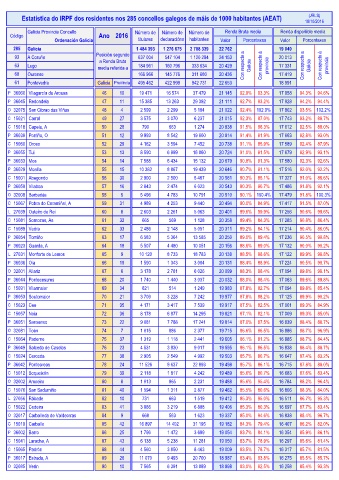 Galicia Provincia Concello           Número de  Número de  Número de   Renda Bruta media  Renda dispoñible media