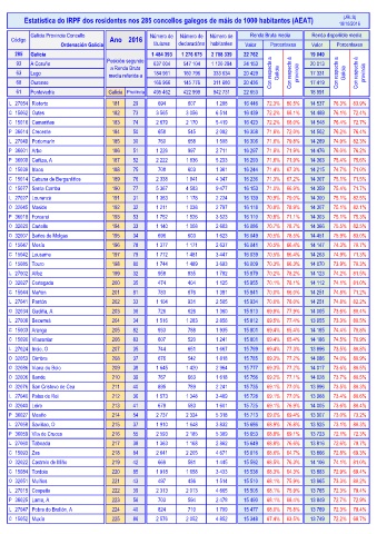 Estatística do IRPF dos residentes nos 285 concellos galegos de máis de 1000 habitantes (AEAT) (JRLS)