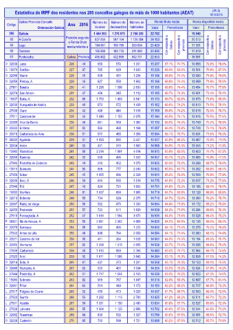 Estatística do IRPF dos residentes nos 285 concellos galegos de máis de 1000 habitantes (AEAT) (JRLS)