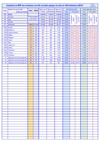 Estatística do IRPF dos residentes nos 285 concellos galegos de máis de 1000 habitantes (AEAT) (JRLS)