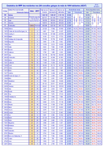 Estatística do IRPF dos residentes nos 284 concellos galegos de máis de 1000 habitantes (AEAT) (JRLS)