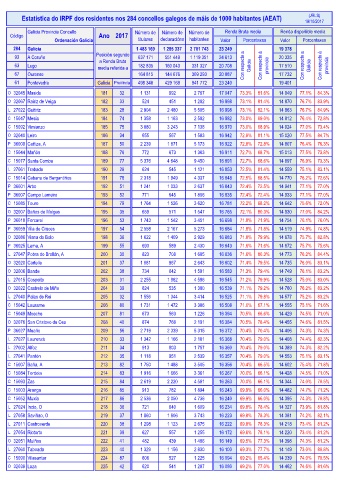 Estatística do IRPF dos residentes nos 284 concellos galegos de máis de 1000 habitantes (AEAT) (JRLS)