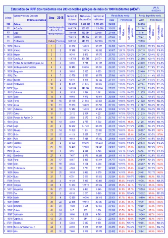 Estatística do IRPF dos residentes nos 283 concellos galegos de máis de 1000 habitantes (AEAT) (JRLS)