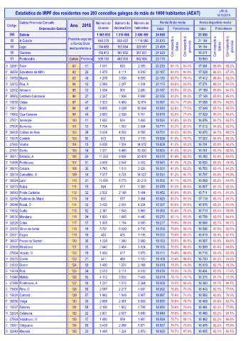Estatística do IRPF dos residentes nos 283 concellos galegos de máis de 1000 habitantes (AEAT) (JRLS)