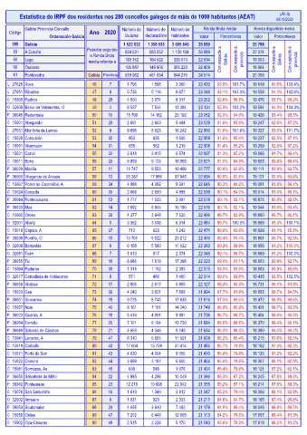Estatística do IRPF dos residentes nos 280 concellos galegos de máis de 1000 habitantes (AEAT) (JRLS)
