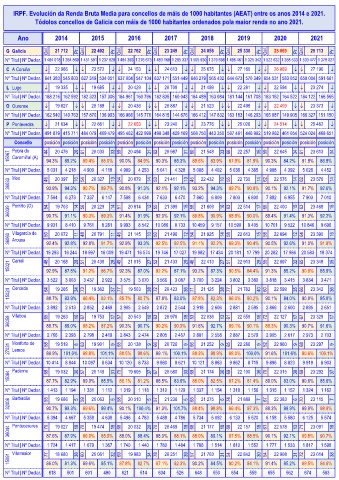 Tódolos concellos de Galicia con máis de 1000 habitantes ordenados pola maior renda no ano 2021.