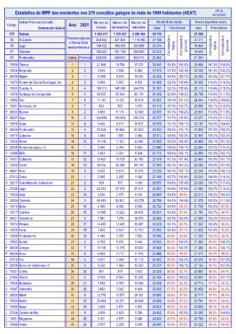 Estatística do IRPF dos residentes nos 279 concellos galegos de máis de 1000 habitantes (AEAT) (JRLS)