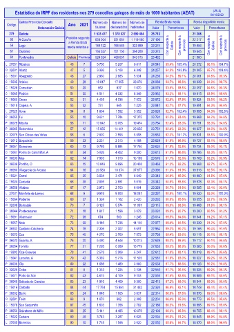 Estatística do IRPF dos residentes nos 279 concellos galegos de máis de 1000 habitantes (AEAT) (JRLS)