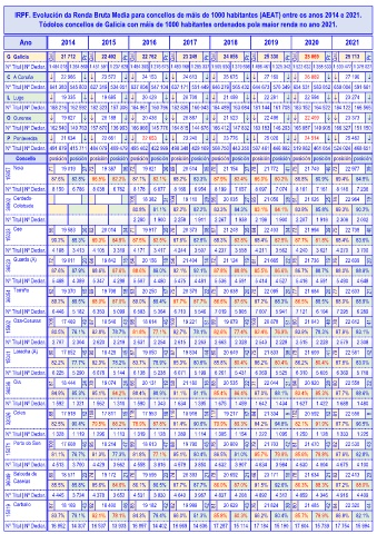 Tódolos concellos de Galicia con máis de 1000 habitantes ordenados pola maior renda no ano 2021.